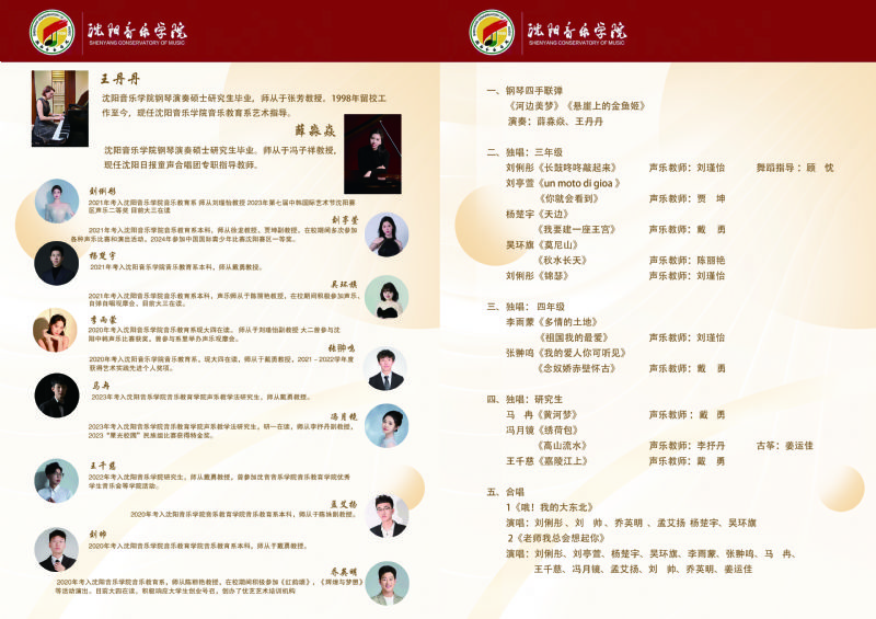 音乐会地点:沈阳音乐学院长青校区第二教学楼15楼演奏厅