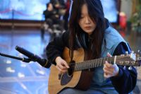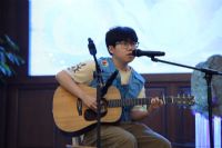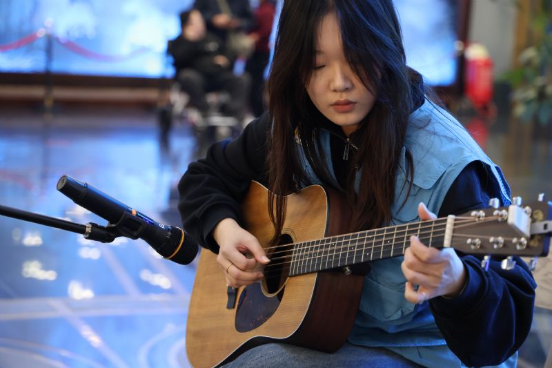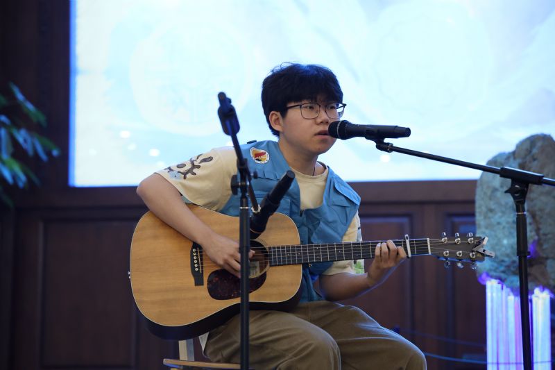 音乐科技系的师生们为现场的参观者带来了精彩的红色文艺轻骑兵演出,歌曲《幸福中国一起走》、吉他弹唱《我爱你中国》《我和我的祖国》,以及具有专业特色的鼓圈表演。演出最后,教师党员石曾老师深情演唱了为庆祝建党百年而创作的原创歌曲《我的家在中国》,这首歌曲由音乐科技系党总支书记姚艳秋作词,著名作曲家铁源作曲,其大气磅礴的旋律和深情的歌词将此次党日活动的氛围推向了高潮。