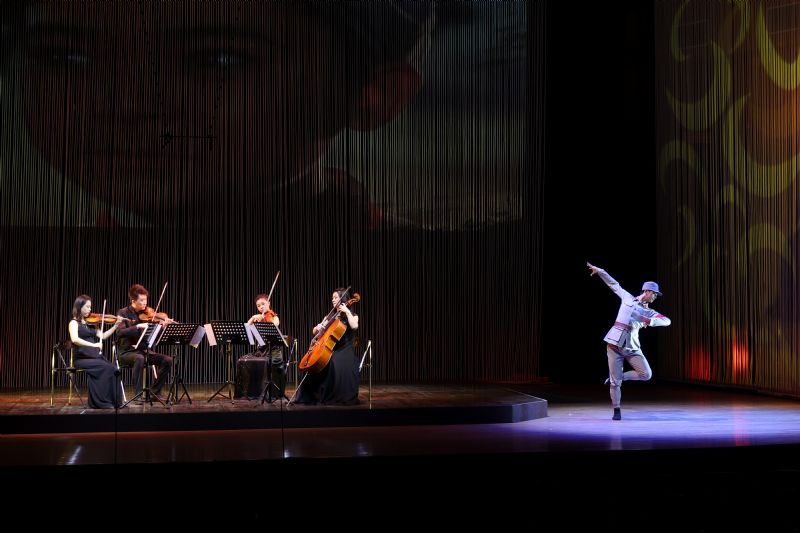 演颂会在我院室内乐团演奏的《延安颂》中拉开序幕。乐曲气势宏大、委婉流畅,将抒情性与战斗性有机融合,追溯了延安红色血脉,抒发了中国青年对祖国美好未来的无限憧憬之情。著名演播艺术家房明震在钢琴与中提琴唯美的乐曲中,满怀激情地朗诵了毛主席诗词《沁园春•雪》。全词融议论、抒情于一炉,大气磅礴、感情奔放,颇能代表毛主席诗词的豪放风格。弦乐四重奏《游击队之歌》旋律轻松流畅、生动活泼,节奏感强,与舞蹈演员不同的状态切换相融合,表达了游击队员灵活与敌人周旋、伺机消灭敌人的典型形象。在弦乐四重奏《映山红》《红星歌》的旋律中,舞蹈演员通过肢体语言的演绎,塑造出不同阶级的人物造型,不仅表达了劳苦大众渴盼红军归来的强烈心声,更表现出与黑暗势力殊死搏斗的革命意志。乐曲《毛主席的话儿记心上》运用深入浅出、通俗易懂的音乐语言,通过影像衔接毛主席在延安文艺座谈会上的讲话,表达了对毛主席的无限景仰与热爱。《翻身道情》全曲节奏欢快、旋律朴实优美,陕北道情热情奔放的音调与酣畅淋漓的舞蹈表演水乳交融,表达了劳苦大众在中国共产党的领导下翻身做主人的喜悦心情。根据人民音乐家冼星海的名作改编的钢琴曲《黄河颂》,大气奔放的旋律配以铿锵有力的朗诵,歌颂了黄河博大、豪放的雄姿,赞美了中华民族不畏强暴、同仇敌忾的英雄气概。器乐曲《初心》曲调悠扬、悦耳动听,展现了革命先辈用鲜血和生命铸就的雄壮历史,表达了中国共产党人牢记初心使命、奋力走好新时代长征路的坚定信念。结束曲《领航》激情昂扬的旋律与恢弘壮阔的画面相呼应,展现了中国共产党光辉的奋斗历程,表达了亿万人民在党的领导下昂首阔步新征程的时代主旋律,将整场演颂会推向高潮。