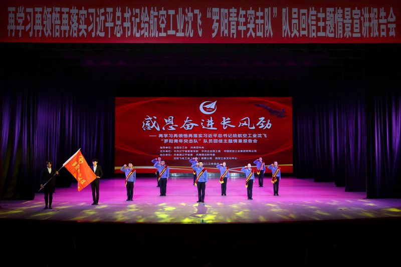 报告会以动人的演绎结合多元的表现形式,生动再现了“罗阳青年突击队”深入贯彻落实习近平总书记重要指示批示精神,在急难险重任务中拼搏奋进、奉献青春,在全面推进航空科技自立自强、航空工业高质量发展、建设航空强国的恢弘实践中勇挑重担、冲锋在前的感人故事,也展现出新时代十年我国航空工业跨越式发展的历程和成就。报告会分为六个篇章,《回信了,总书记回信了!》讲述了习近平总书记重要回信在航空工业“罗阳青年突击队”和航空工业全线引起的热烈反响;《让青春在建设航空强国的火热实践中绽放光芒》讲述了罗阳青年突击队十年来奋战一线的故事;《谁的罗阳》,由罗阳的女儿罗靓讲述女儿眼中,既是父亲,也是航空工业英模的罗阳平凡而伟大的印象与回忆;《这十年》讲述了突击队队员参与项目研发生产的故事,展现了舰载机十年、航空工业十年发展成就;《幸福都是奋斗来的!》展现了航空青年成长成才、报国强国的故事和成绩,也展现了青春航空、青春中国、青春伟业的赓续传承;《请党和人民放心》讲述了航空人面向未来、接续奋斗的故事,表达了强军有我、强国有我、复兴有我的信心和决心。