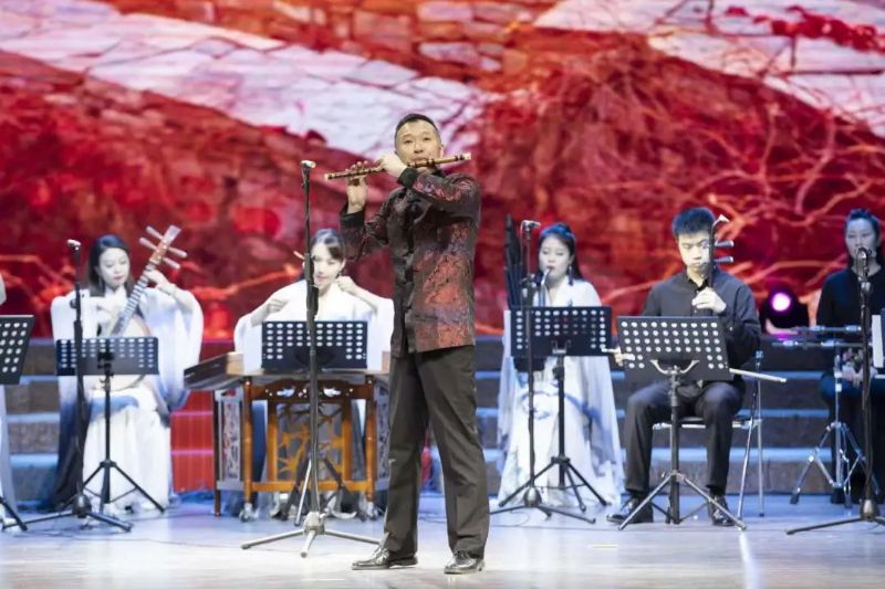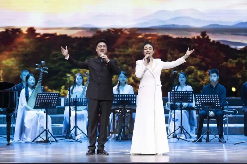 民乐合奏《我和我的祖国》优美抒情的演绎,拉开了本次专场音乐会的序幕。曲目《春风十万里》、竹笛独奏《沂蒙山歌》、古筝独奏《山丹丹花开红艳艳》、手风琴独奏《我为祖国守大桥》等节目逐一登场,收获台下观众的阵阵掌声。本次专场音乐会选择的节目,既有沈阳音乐学院老校友傅庚辰作词作曲的经典曲目,也有为此次专场音乐会倾情创作的《一路同行》《像你一样》等全新曲目,还有从沈阳音乐学院教材里精选出来的曲目。