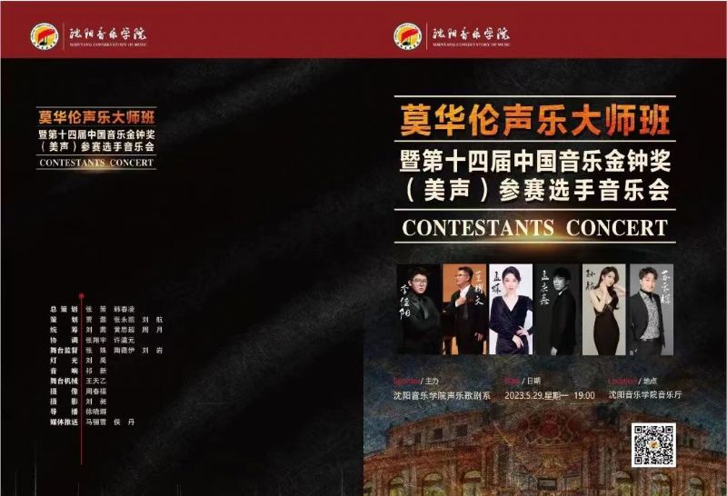 音乐会名称:莫华伦声乐大师班暨第十四届中国音乐金钟奖(美声)参赛选手音乐会