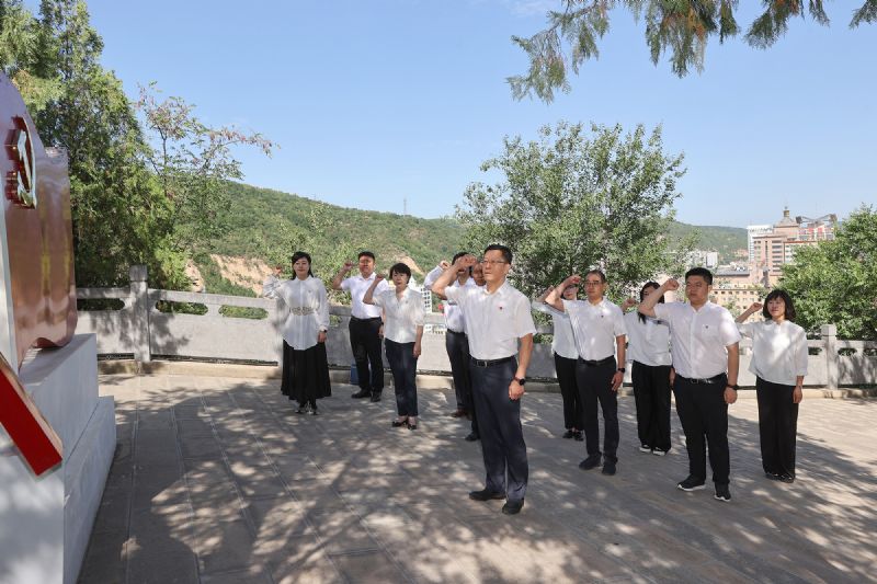 站在宝塔山上,俯瞰延安整个城区,学员们深刻感受到宝塔山将历史文物和革命遗址融为一体的文化底蕴;眺望陕甘宁边区政府旧址,大家深切体会到延安这片土地上蕴藏和流淌着一种弥足珍贵的精神财富。宝塔山上,党委书记赵恒心带领全体共产党员,面向鲜红的党旗,高高举起右拳,重温入党誓词,追忆入党初心,喊出“对党忠诚、永不叛党”的铮铮誓言。
