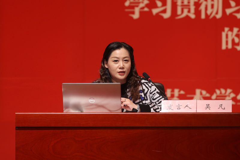 冯志莲作题为《全面提高人才培养质量 办人民满意的高等艺术教育》的发言,以我院创排的大型情境音乐舞蹈史诗《红韵颂》、原创古典舞群舞作品《散乐图》以及系列非遗研修培训为例,分享交流了我院在课程思政建设、地域文化创新发展和传统文化传承等方面的积极探索和取得的突出成绩。她强调,学院将进一步科学规划、合理调整学科专业布局,深化教育教学改革,积极打造重大标志性成果,全面提升办学质量,着力加强内涵建设,努力办好人民满意的高等艺术教育。