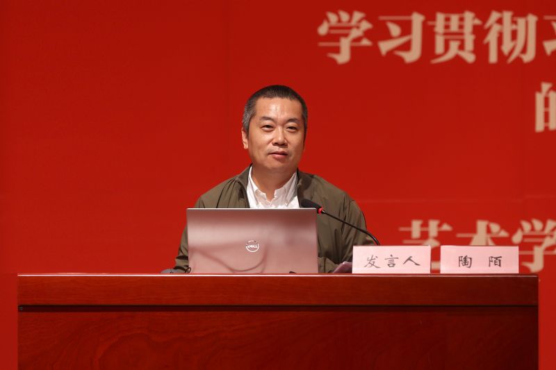 我院党委书记赵恒心以《深入学习习近平总书记在文艺工作座谈会上的重要讲话精神 更好践行文艺工作职责使命》为题,从认识讲话的重大意义、践行文艺工作使命任务和加强党对艺术教育工作的领导三方面作专题发言。赵恒心指出,文艺工作要服务时代,创作无愧于时代的优秀作品;要服务人民,坚持以人民为中心的创作导向;要服务社会主义,塑造弘扬中国精神。赵恒心强调,沈音作为具有红色基因的高等艺术院校,要学深悟透习近平文化思想,大力弘扬鲁艺精神,全面加强党对艺术教育工作的领导,练就“政治家”的定力,培树“教育家”的精神,养成“艺术家”的眼光,赓续鲁艺政治性与艺术性深度融合的光荣传统,确保沈音红色血脉不变质、不变色、不变味,始终沿着正确的方向健康发展。