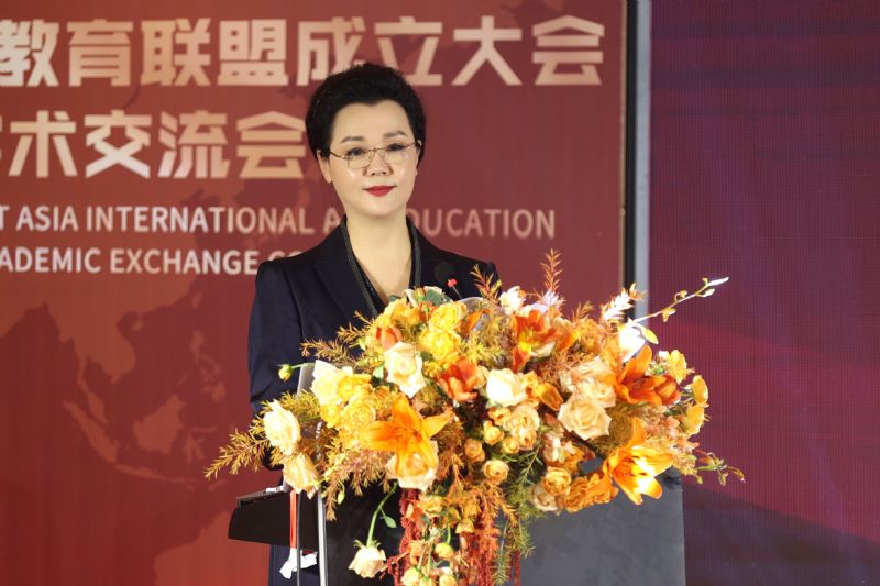 辽宁省教育厅国际交流合作处处长韩冬梅致辞,她对东北亚国际艺术教育联盟的成立表示祝贺,希望在我院和各国院校的共同努力下,东北亚各国艺术教育交流与合作更加深入密切。