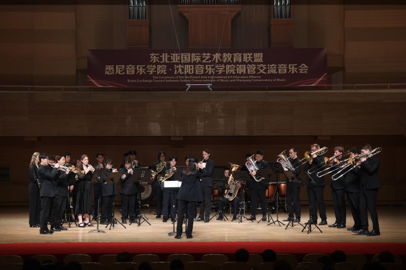 10月13日,“悉尼音乐学院•沈阳音乐学院铜管交流音乐会”在我院精彩上演。此次音乐会是我院发起并主导的东北亚国际艺术教育联盟成立后的系列音乐会之一。悉尼音乐学院副院长兼教育副院长、著名作曲家马修•辛森,中国音乐及民族音乐学研究生博士生导师及中国乐团总监刘璐,钢琴教授保罗•里卡德•福特,我院副院长冯志莲(主持行政工作),国际交流合作处、管弦系负责人和我院师生共同观看音乐会。音乐会由戏剧影视学院教师王丹主持。