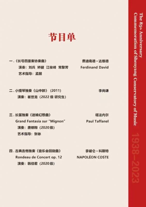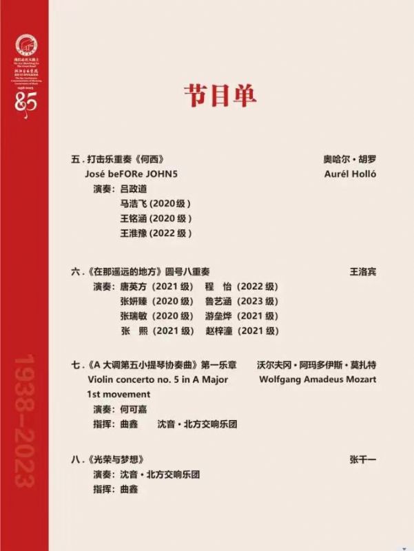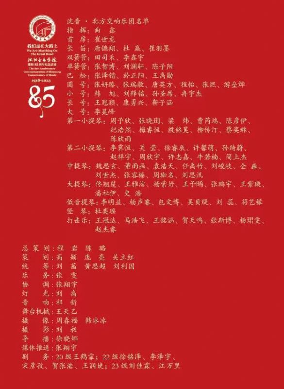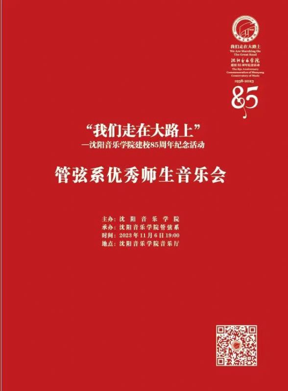 音乐会名称:“我们走在大路上”—沈阳音乐学院建校85周年纪念活动——管弦系优秀师生音乐会