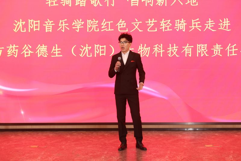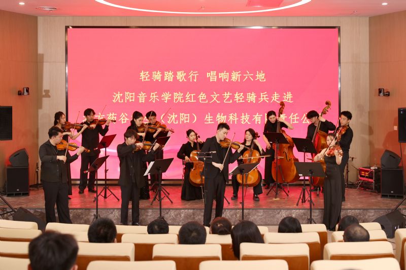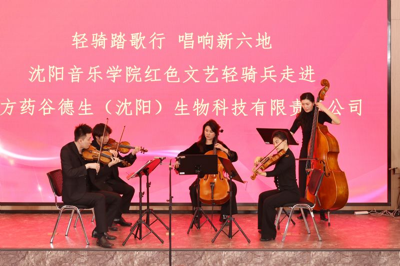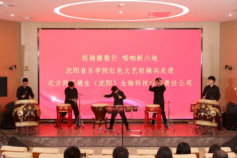 4月29日,在中德(沈阳)高端装备制造产业园德生制药有限公司报告厅,一场融汇中西、别开生面的音乐会正在这里精彩上演。沈阳音乐学院“红色文艺轻骑兵”小分队的同学们为德生制药的工程师和科技人员带来了歌剧、室内乐、民族打击乐等多部声乐和器乐作品,让现场观众近距离领略高雅艺术的魅力。