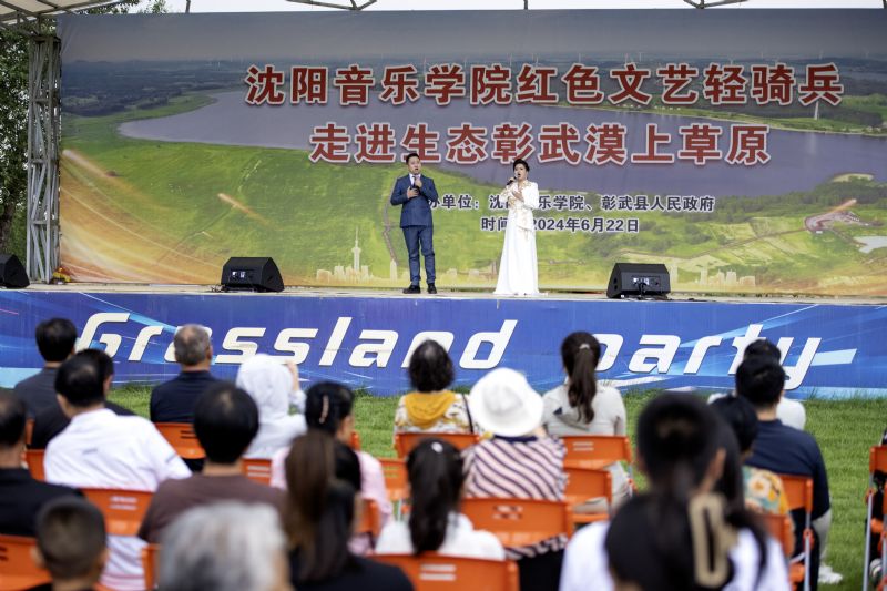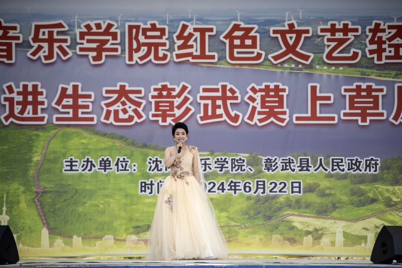 6月22日,沈阳音乐学院“红色文艺轻骑兵”走进阜新市彰武县德力格尔,为治沙代表李东魁、李明明、屈丽萍、黄征及基层林业工作者和德力格尔风景区游客献上一场别开生面的文艺演出。