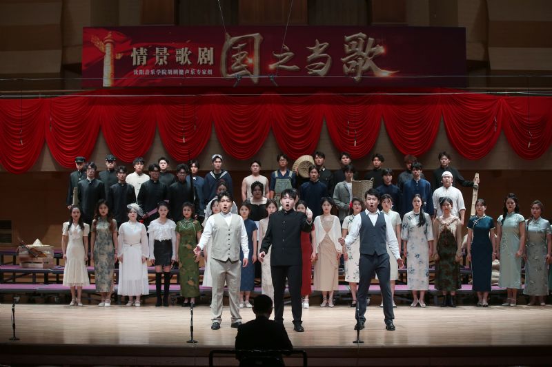 歌剧《国之当歌》以“九一八”事件爆发为背景,讲述了田汉、聂耳共同创作《义勇军进行曲》的故事,歌颂了“天下兴亡、匹夫有责”的家国情怀和“用我们的血肉筑成我们新的长城”的大无畏精神。演出过程中,参演师生深情演绎了《义勇军进行曲》《天才的陨落》等20余首经典曲目,用歌声扣动观众的心弦,让人不禁回想起中国人民所经历的苦难,更深切地感受到中华民族不屈的反抗精神。