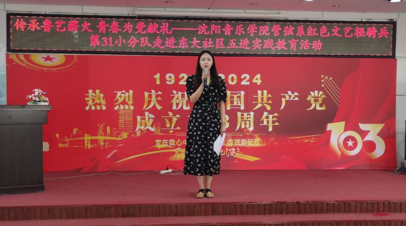 7月1日,“红色文艺轻骑兵”管弦系小分队与管弦系师生党员,走进和平区东大社区,开展“传承鲁艺薪火,青春为党献礼”五进实践教育党日活动,重温党的光辉历史,讴歌党的丰功伟绩,庆祝党的103周年华诞。