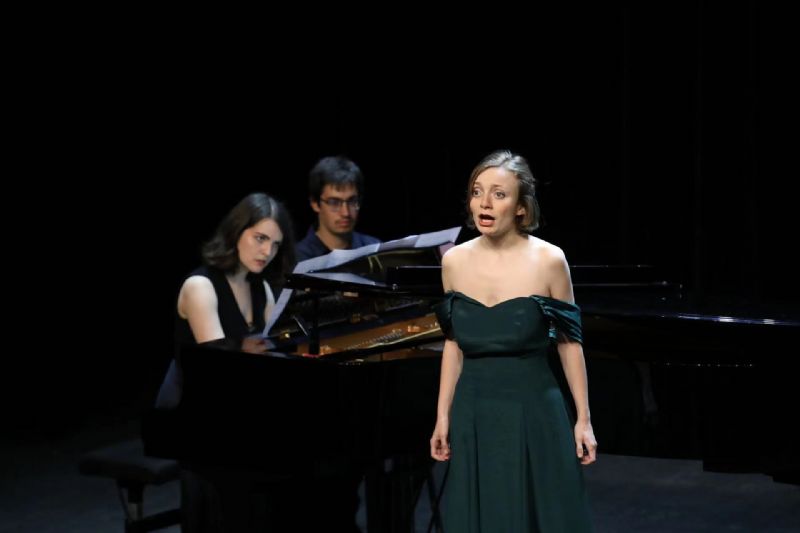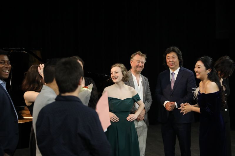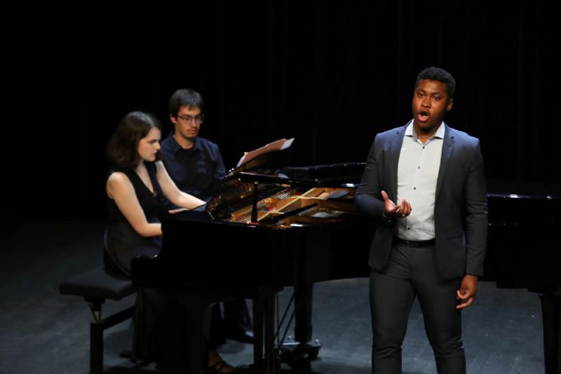 音乐会上,我院声乐歌剧系研究生孟庆鑫、张智超,戏剧影视学院本科生刘艺淳与巴黎国家高等音乐学院的三位学生同台献艺,演唱了多首风格各异的经典声乐作品。学生们凭借丰富的舞台表现力和扎实的演唱功底,赢得现场观众阵阵掌声和喝彩声。