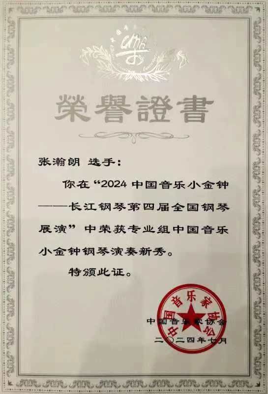 在2024中国音乐小金钟比赛中斩获殊荣