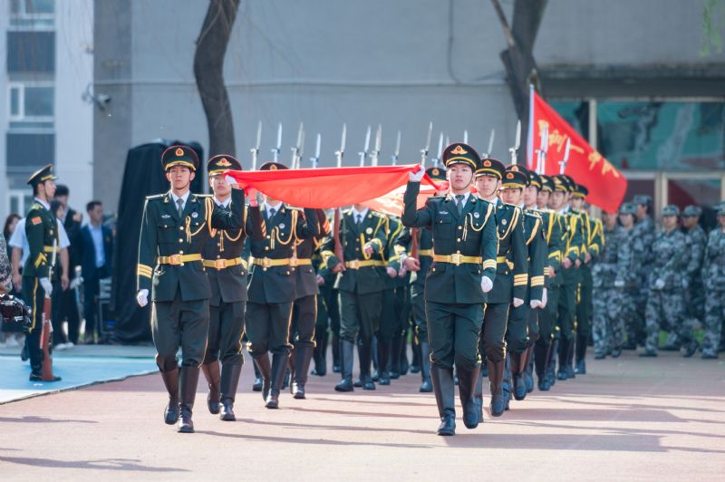 护卫队高举国旗、校旗经过主席台