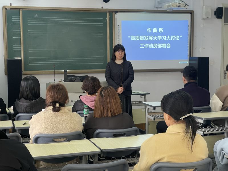 11月11日,作曲系在第二教学楼236教室召开“高质量发展大学习大讨论”工作动员部署会议,全体教师参加会议。党总支书记吴迪阐述了“大学习大讨论”活动的重要意义,并动员师生以主人翁意识参与活动,为学院高质量发展积极建言献策。