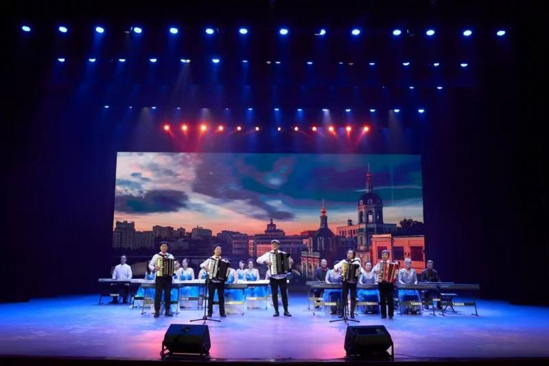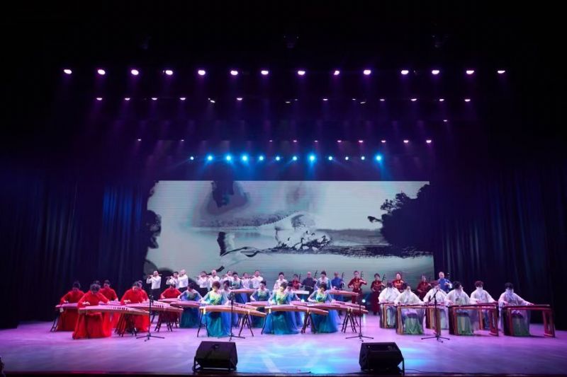 金指飞舞秀银龄风采,琴悦人生绽夕阳芳华。音乐会在键盘音乐组合《长子情》《春节序曲》《我和我的祖国》等作品中拉开帷幕。精彩的演出生动展现了银龄学员们昂扬向上,追求更高更远目标的精神面貌。古筝合奏《水中月》、古琴联奏《酒狂》《四大景》、二胡齐奏《八月桂花遍地开》以及竹笛、古筝联奏《映山红》、古筝齐奏《我的祖国》等作品,曲曲琴声悠扬,声声富有神韵。舞台上的演奏者在入学前大部分都是零基础,通过在老年大学的学习,让他们感受到了民族乐器的独特魅力,并通过拨动琴弦,以弦为心声,在舞台上展现他们的学习成果,展示着他们享受文化艺术的快乐,演绎着他们别样的幸福“夕阳红”。