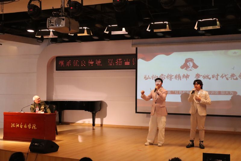 邬大为深入浅出地阐述了雷锋精神的内涵。他指出,雷锋精神的核心是信念的能量、大爱的胸怀、忘我的精神、进取的锐气,这正是我们在新时代实现个人价值和社会价值所不可或缺的品质,体现了“向上”的人生姿态和“向善”的价值追求,是对社会主义核心价值观的生动诠释和有力践行。邬大为结合自己的亲身经历,讲述了抗美援朝战争期间的战地生活,通过一系列生动鲜活的故事和震撼人心的战斗经历,让学生们更加深刻地感受到战争中的人民所遭受的深重苦难,以及中国志愿军战士在极端困难的条件下所表现出的不畏强敌、坚韧不拔、敢于斗争的英勇精神。他强调,抗美援朝精神与雷锋精神都是中国共产党人精神谱系的伟大精神,都强调了爱国主义情怀,都是对中华民族传统美德的传承与发扬光大,是中华民族宝贵的精神财富。邬大为对沈音学子提出了殷切期望。他指出,艺术来源于生活,又高于生活。同学们要深入生活、扎根人民,从人民群众的伟大实践和丰富多彩的生活中汲取营养,创作出更多具有时代特色、反映人民心声的优秀作品。同时,要不断提高自身的艺术水平和艺术修养,用精湛的技艺和饱满的热情演绎作品,为推动我国音乐事业的发展贡献力量。