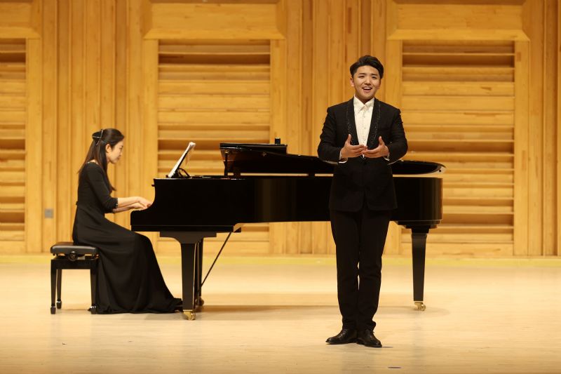 演出涵盖民族声乐演唱、民族器乐和管弦乐演奏、歌剧、音乐剧、钢琴、巴扬演奏等多种艺术表演形式,演出既展现了西方古典音乐艺术魅力,又彰显了中华优秀传统文化的丰厚底蕴。演出在独唱《斗牛士之歌》雄浑激昂的歌声中拉开序幕,随后,钢琴独奏《斯克里亚宾前奏曲集》,演奏者用精湛的技巧诠释了浪漫主义至神秘主义的风格跨越;一曲《山丹丹开花红艳艳》,高亢悠扬的歌声唱出了信天游跌宕的声情和黄土地的炽烈情怀;二胡与竹笛重奏《陌上花开》,通过二胡的婉转绵长与竹笛的清亮灵动交织,展现出自然与人文交融的盎然诗意。小提琴独奏《引子与回旋随想曲》,通过小提琴的深沉抒情与激情奔放的技巧对比,交织出浪漫主义的诗意与戏剧性的张力。东北民歌《双回门》,以诙谐生动的表演展现出东北地区独具特色的地域文化。笙独奏《甘榜印象》则以笙的丰富和声与悠扬音色,刻画出田园生活的质朴欢愉,展现出传统与现代交织的民俗画卷。音乐剧《剧院魅影》经典唱段《夜之乐章》,将古典美声与现代流行音乐完美融合,表现出独特的音乐风格。