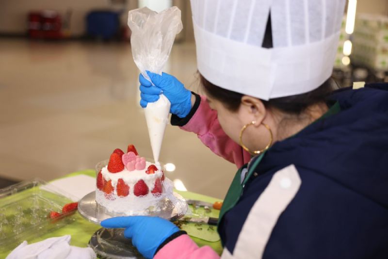 此次活动特邀请皇后西斯汀蛋糕店精心准备了烘焙所需的新鲜食材,并由专业烘焙师对教职工现场讲解蛋糕制作技巧,从奶油涂抹、水果装饰到造型设计,逐步示范操作流程。女教职工们兴致盎然,大家仔细倾听,全情投入,认真制作,纷纷化身“烘焙达人”,在烘焙师的指导下发挥创意,一个个造型精美、独具创意的蛋糕新鲜出炉,活动现场洋溢着欢声笑语,大家共同享受着烘焙的过程,相互欣赏各自的创作成果,并与自己甜蜜的“作品”拍照留念,现场弥漫着快乐和幸福的气息。