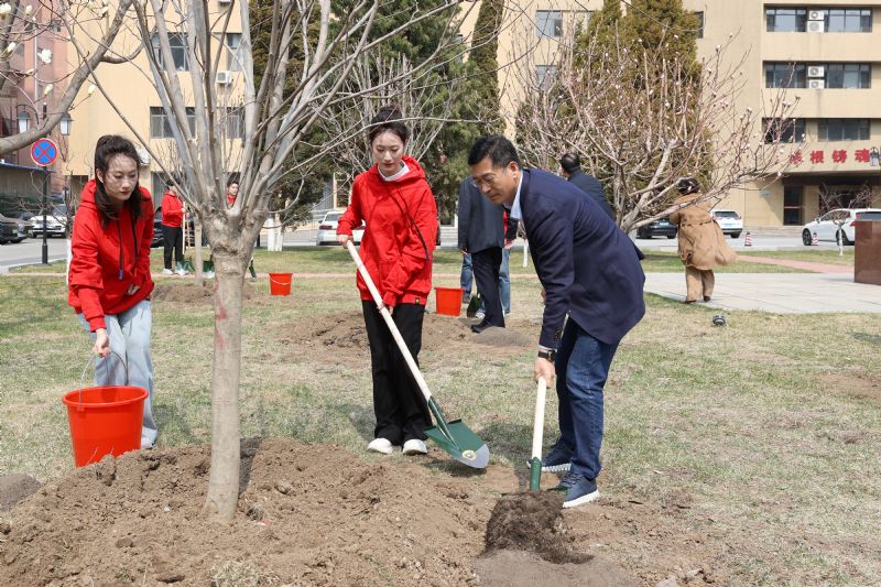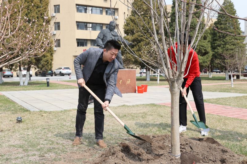 活动现场气氛热烈,大家热情高涨,干劲十足。学院领导率先垂范,在现场与同学们一起挥锹铲土、扶苗填坑、提桶浇水,师生们配合默契,到处都是忙碌的身影,呈现出一片热火朝天的劳动景象。经过大家的辛勤劳动,一株株玉兰、海棠、丁香、樱花树苗在校园里“安家落户”,迎风挺立并展现出勃勃生机,为校园增添了一抹亮丽的风景线。
