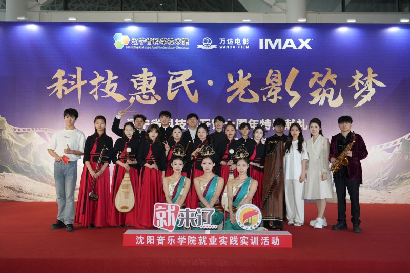 在辽宁省科学技术馆全国最大的IMAX银幕放映《哪吒之魔童闹海》期间,学院师生通过“哪吒主题”的文艺演出来展示音乐舞蹈的独特魅力,为辽宁文旅事业发展赋能蓄力。舞蹈学院学生演出的古典舞《闻法飞天》,轻盈的步伐、曼妙的身姿,通过水袖演绎灵动飘逸的飞天神韵,展现传统文化与现代艺术的完美交融;现代音乐学院学生的萨克斯独奏《就是哪吒》以爵士乐为基底,用西洋乐器诠释哪吒的反叛与觉醒,彰显音乐的创新表达;民族器乐系首次演出民乐重奏《我是哪吒》,二胡、琵琶和鼓点交织融合,再现风火轮疾驰般的节奏张力,体现民族音乐的当代演绎,为此次演出的“哪吒主题”积极助力。