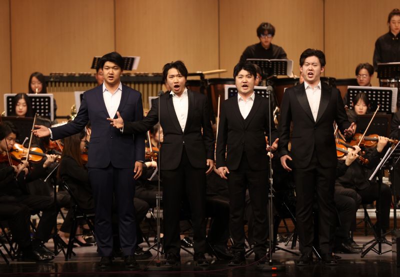 音乐会由旅美指挥家、沈阳交响乐团副团长卞思聪执棒,一首充满激情的《北京喜讯到边寨》拉开了音乐会的帷幕,热情奔放的旋律营造出炽热的欢乐氛围。随后,《瑶族舞曲》以其柔美的旋律展现瑶族人民载歌载舞的喜庆场面,民族风情娓娓道来。歌曲《天路》,演唱者用清亮高亢的歌声向青藏铁路建设者们致敬。令人耳熟能详的歌曲《在希望的田野上》,旋律质朴、情感真挚,赞美希望的田野、歌颂美好的新时代。歌曲《我为祖国献石油》《咱们工人有力量》,以铿锵的节奏、豪迈的旋律展现出工人阶级昂扬向上的精神风貌和建设祖国的壮志豪情。我院北方交响乐团还演绎了爱德华·埃尔加[英]《爱的致意》、约翰内斯·勃拉姆斯[德]《匈牙利舞曲第五号》、贝多芬《c小调第五交响曲“命运”》第四乐章、《太阳出来喜洋洋》《花好月圆》《丰收》等多首中西经典交响乐,西方交响的严谨结构与中国旋律的诗意流淌碰撞出奇妙的火花,从古典主义的理性到东方美学的写意,每个音符都在诉说人类共同的情感密码。