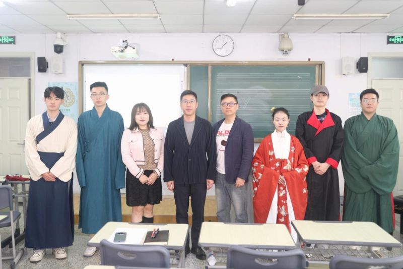 在延衿汉文化社团调研期间,副院长庞渤高度赞扬师生以文化传承为己任的使命担当,充分肯定其在优秀传统文化创造性转化与创新性发展中作出的积极探索。活动中,他与青年学子共赴“衣冠上国·华夏霓裳”主题文化盛宴,通过系统的汉服形制学术解析、沉浸式穿戴体验等环节,生动展现中华传统服饰体系所承载的礼制文明与美学智慧。