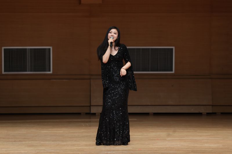 音乐会上,共演出14首声乐作品,展现出我院教师对不同风格声乐作品的精准驾驭与深刻理解。首曲《日破云涛万里红》大气恢弘,拉开了音乐会的序幕。歌剧选段《娘在那片云彩里》,演唱者以饱含张力的声线刻画角色情感,抒发家国情怀。随后的两首由维吾尔族民歌改编的作品《再唱一杯美酒》《美丽的阿瓦尔日古丽》将民族唱腔的细腻婉转与地域文化的醇厚底蕴完美融合。充满澎湃激情的曲目《三江口》,演唱者以丰富的情感和精湛的演唱技巧展现出歌曲中江河奔腾的壮丽景象。歌剧选段《影子之歌》《苦涩的欢乐》《孤独,堕落,我被人抛弃》,三位演唱者凭借扎实的声乐技巧与戏剧化表达,重现经典作品的艺术魅力,彰显声乐演唱的严谨技巧与张力。河北民歌《小白菜》极具感情色彩和变化,演唱者将中国传统民歌曲调与西方声乐技法完美融合,为歌曲赋予新的内涵。随后的流行声乐曲目《一面湖水》、《光亮》等作品,演唱者以专业声乐技巧表现流行与爵士风格,展现出我院教师对现代音乐艺术的前沿诠释与创新实践。