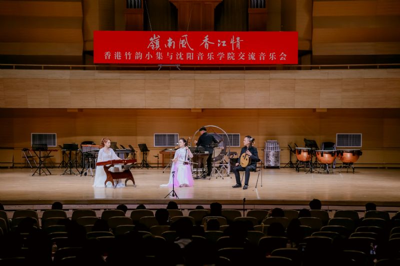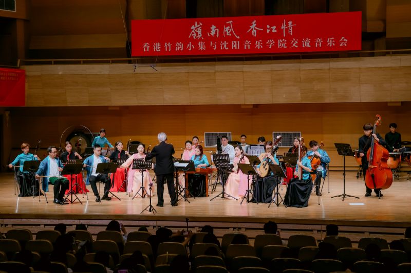 香港竹韵小集是香港专业中乐室内乐团,兼具“最传统,最当代;小而美,简而精”的艺术特色。在“岭南风·香江情”音乐会上,乐团演奏了《新彩云追月》《月光光》《平湖秋月》《春风笑语》《粤舞升平》《万水千山总是情》《兰桂腾芳》及《庙街探戈》等曲目,以音乐呈现香港景致,再现粤乐经典风貌;此外,我院师生还演出了《风吹·山海关外》《萨尔浒随想》《花开向阳》等融合辽宁地域文化特色的曲目。最后,两地乐团合奏《东方之珠》,熟悉的旋律如香江之水,既诉说着香港的独特魅力,也展现出新时代港人的精神风貌。