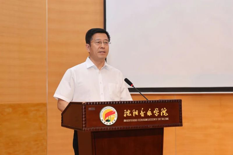党委副书记孙旭东主持会议并宣读《沈阳音乐学院关于公布2025年中青年音乐表演拔尖人才的通知》《关于公布入选2025年沈阳音乐学院“鲁艺学者计划”人选的通知》