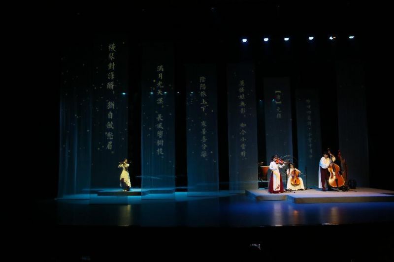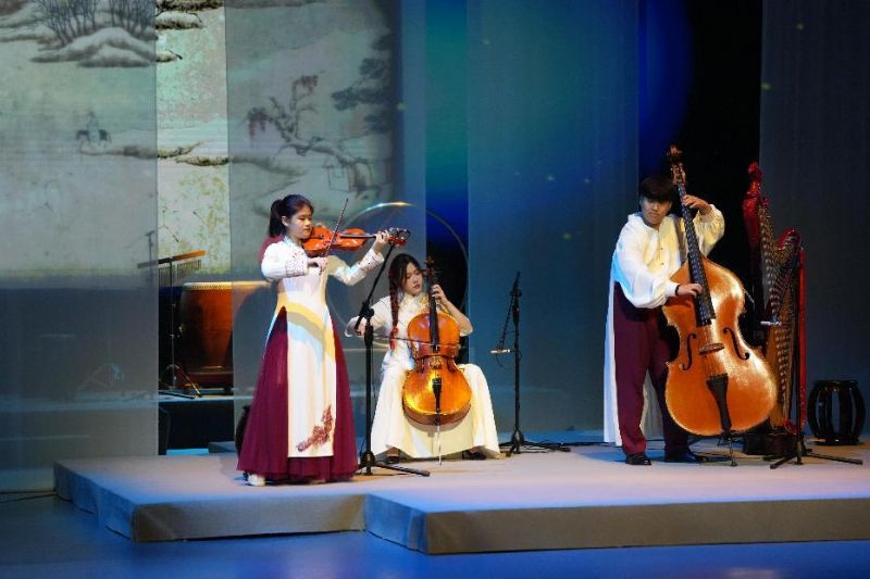 随后的《小雪》展现中西弦音对话,竹笛声模拟着雪花悄然飘落的姿态,大小提琴的加入带来一丝别致的色彩,描绘出初冬第一场雪的清新与温柔。《小寒》奏响,仿佛能听到凛冽寒风掠过空旷原野的呼啸,营造出万物深藏、天地一片冰封的极致静谧;踏雪寻梅,凌寒独放。千古名曲《梅花三弄》焕发新声,奏响一曲穿越寒冬的生命礼赞。
