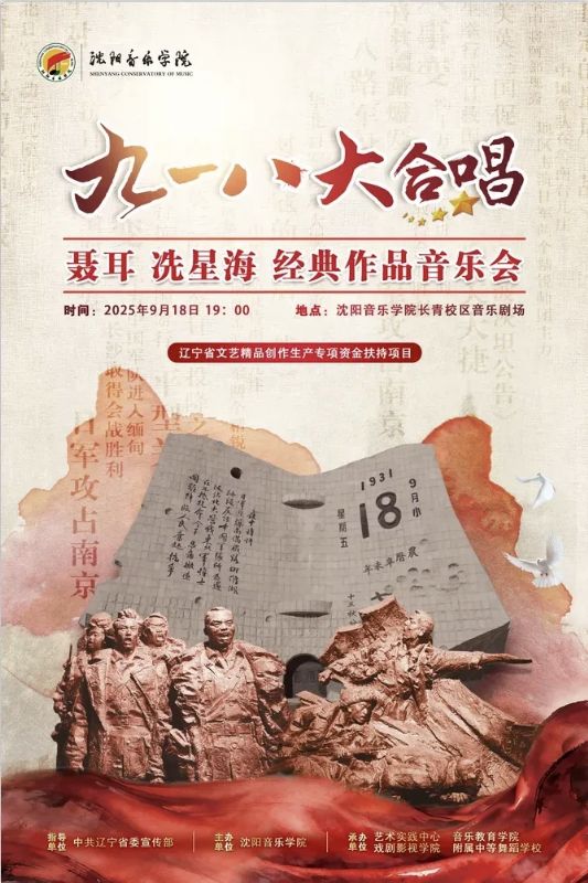 九一八大合唱聂耳 冼星海 经典作品音乐会 时间:9月17日、18日 19:00 地点:长青校区音乐剧场