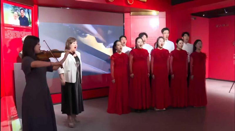 教师和学生代表在校史馆演出学院创作的代表性音乐作品