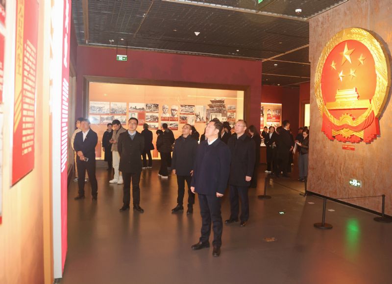 学院领导与师生在展馆内参观