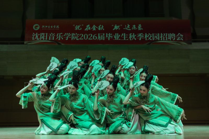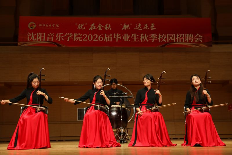 招聘会上,近40名毕业生现场演出了舞蹈《清风徐来》、铜管打击乐重奏《中国军魂》《歌唱祖国》以及民族室内乐重奏《风吹·山海关外》等节目。学生们以精湛的专业技艺获得了用人单位的一致好评。专业展演结束后,2026届毕业生与用人单位进行现场交流洽谈。现场毕业生共投递简历640余份。招聘会前,辽宁省文体旅集团人才发展有限公司总经理王忠超与参会单位代表参观了学院校史馆。