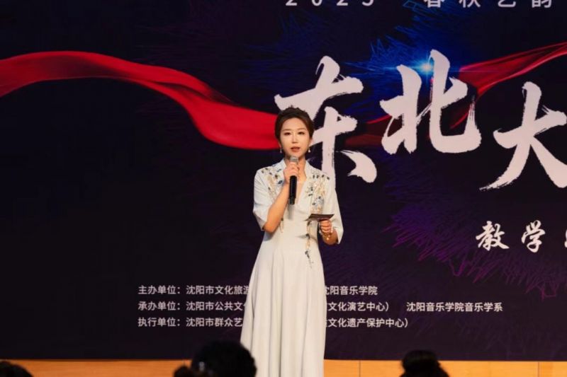 展演伊始,刘小龙为本次展演致辞。他指出,东北大鼓作为我国传统曲艺的杰出代表,以其独特的艺术魅力和深厚的文化内涵,成为东北人民精神文化生活中不可或缺的重要组成部分。沈阳音乐学院作为“鲁艺”的传承者,肩负着弘扬民族精神、传承民族文化的使命。多年来,学院深耕东北地域文化沃土,致力于民族民间音乐的研究、保护与教学实践。此次展演,不仅是对传习班学习成果的集中展示,也是东北大鼓在新时代传承发展的生动写照。学院将在未来持续深化与沈阳市文化旅游和广播电视局等相关部门的合作,进一步推动东北大鼓的保护与传承,不断完善非遗传承体系,打造更多具有影响力的文化品牌和艺术活动。