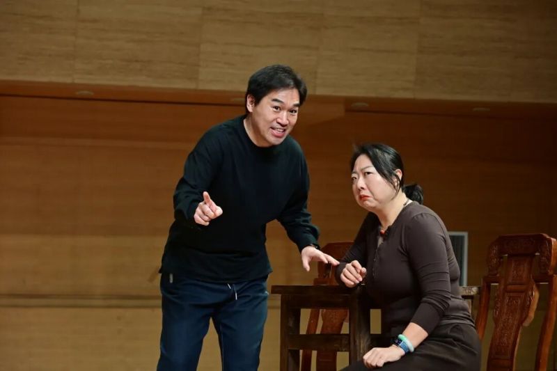 排练现场,曾任2015版民族歌剧《白毛女》导演的朱亚林导演为演员们细致讲解每一句台词的内涵、每一个动作的情感表达,帮助演员深入理解角色;在音乐呈现上,2015版《白毛女》指挥刘凤德先生带领沈阳音乐学院北方交响乐团为演员进行全剧唱段的合乐排练,确保演奏与演唱的完美融合;沈阳京剧院原院长李旗红老师为演员们进行身段及步法指导,让他们的舞台呈现更具民族韵味与特色。