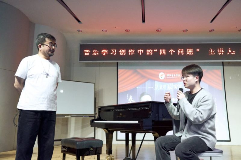 近日,沈阳音乐学院作曲系99级校友、著名作曲家、演奏家、制作人及导演,中国音协爵士乐学会副秘书长,沈阳音乐学院客座教授秦四风应邀重返母校,为师生带来《音乐学习创作中的“四个问题”》主题学术讲座。作为学院2025年秋季学期“筑巢引凤回沈音”系列活动的第二场重磅分享,此次讲学活动吸引了众多关注。学院副院长庞渤,学院教务处、对外合作办公室、作曲系负责人与百余名师生共同聆听讲座和大师课。