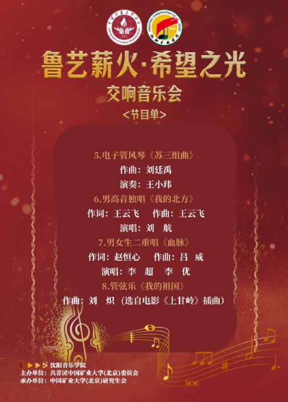中国矿业大学(北京)团委特邀沈阳音乐学院的师生们倾情呈现 “鲁艺薪火·希望之光”交响音乐会。让我们共赴这场秋日音乐之约,在旋律的起伏中,感受光荣与梦想,汲取奋进的力量。