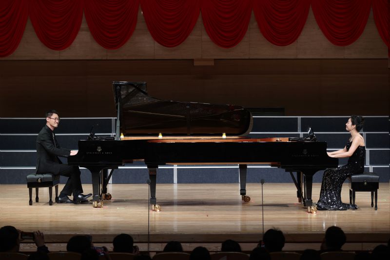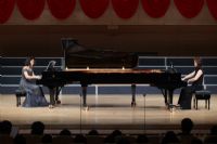 5位青年教师先后演奏了钢琴曲《肖邦f小调叙事曲Op.52》、双钢琴曲《假面舞会随想曲》和《迪祖·吉莱斯皮“曼特卡”双钢琴释义曲Op.129》,将具有音乐符号意义的经典钢琴作品展现在舞台上,向观众展示美轮美奂、变换无穷的音乐画面。