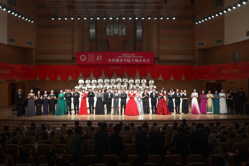 一首首耳熟能详的经典歌曲荡气回肠,一段段美妙绝伦的旋律令人陶醉。音乐会融合交响乐、合唱、重唱、独奏、重奏等多种艺术表现形式,是音乐教育学院师生向学院建校85周年的献礼之作,同时也是音乐教育学院专业教学和艺术实践成果的一次集中展示。整场演出精彩纷呈、高潮跌宕,令人震撼、催人奋进。