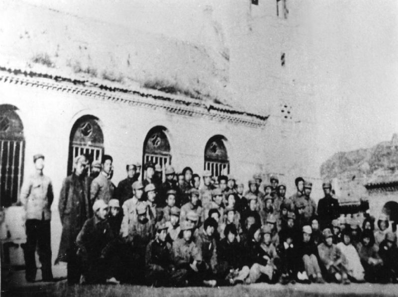1938年4月10日鲁迅艺术学院正式成立,于延安举行成立典礼,毛泽东等中央领导亲临大会,并与师生合影。