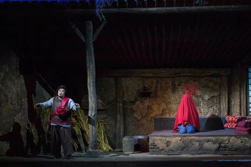 比如周老爷二幕五唱段“有救,有救,有救,只要你听我的”,先是五度,后是八度,然后再接近于说白,语气越来越重,调门越来越高,把周老爷胸有成竹的这种自信状态表现出来。再比如语气式的宣叙风格以及对白的适度间插,对人物心理描绘和性格塑造起了很大的作用。