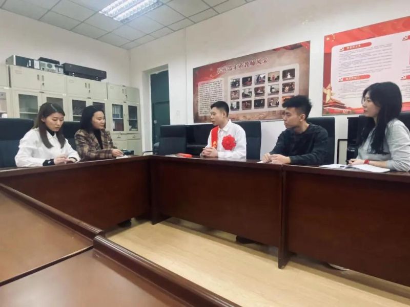 王艺霏向崔迪介绍了学院在校生应征入伍优抚待遇有关规定,系里将对入伍学生后续工作负责到底,与学生保持密切联系,随时解决学生的后顾之忧。