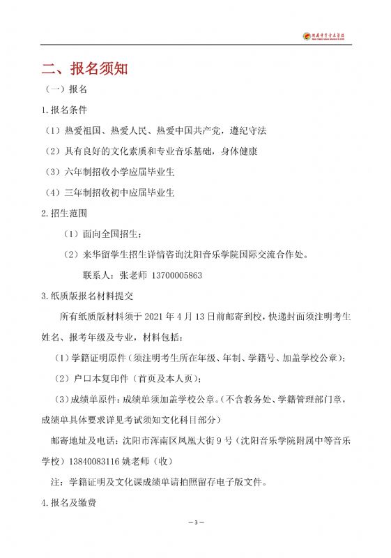 2021年沈阳音乐学院附属中等音乐学校招生简章.pdf