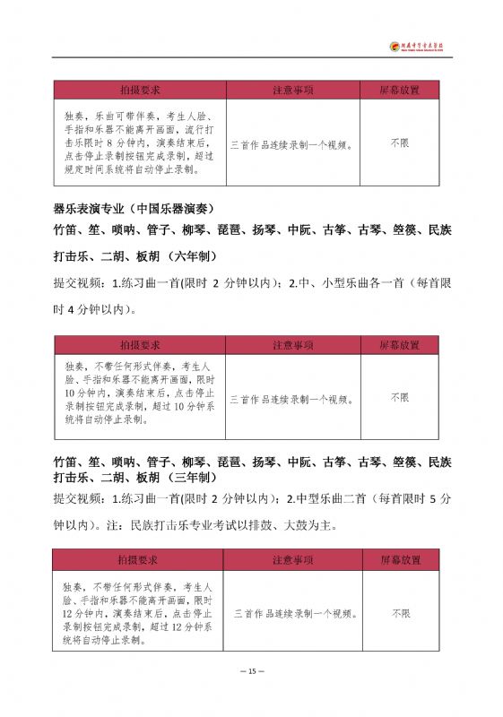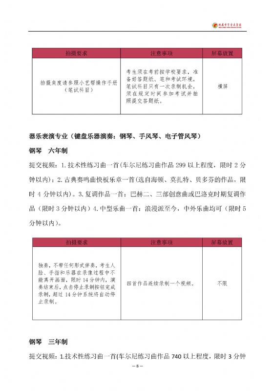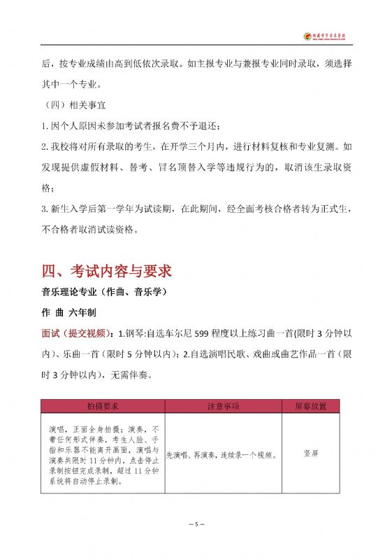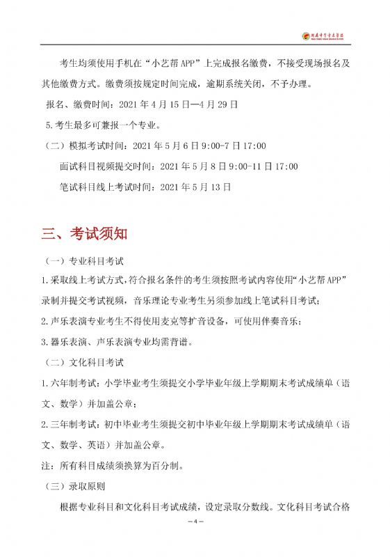 2021年沈阳音乐学院附属中等音乐学校招生专业考试考生须知