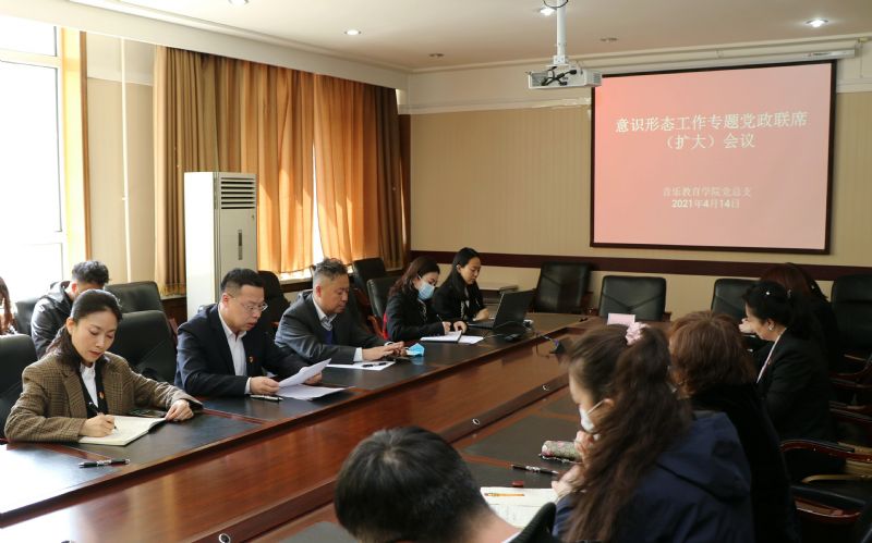 为认真贯彻落实院党委意识形态工作要求,切实做好意识形态工作。4月14日下午,音乐教育学院党总支召开2021年意识形态工作专题党政联席(扩大)会议。音乐教育学院院领导班子、正科级领导干部参加会议。会议由党总支书记严万山主持。