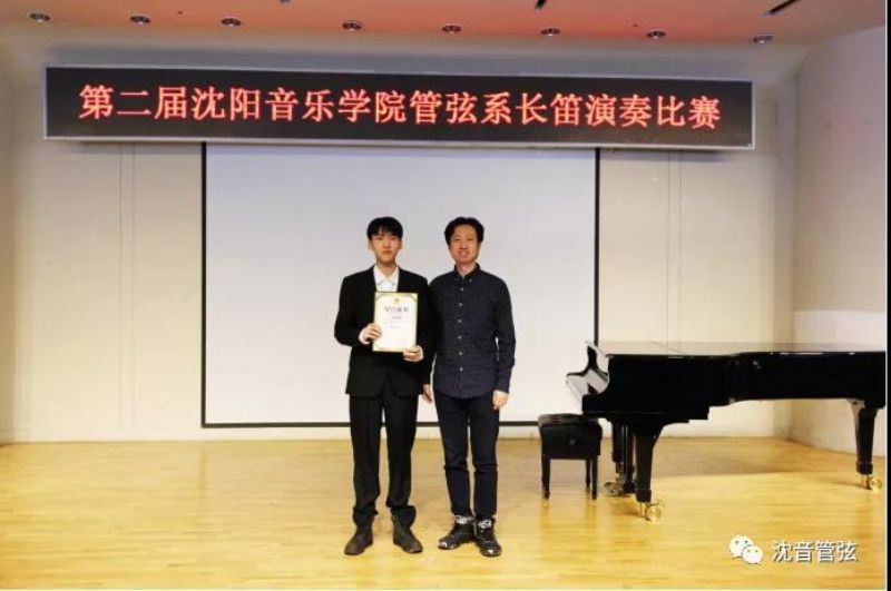 沈阳音乐学院音乐教育学院长笛教室孙晓琳为获得第六名选手2018级学生马克颁发获奖证书