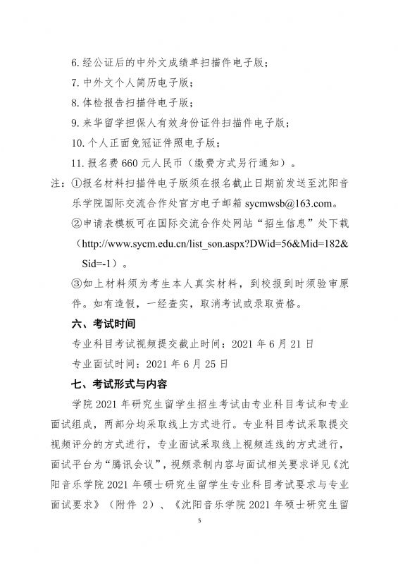 附件2: 沈阳音乐学院 2021年硕士研究生留学生专业科目考试要求与专业面试要求.pdf